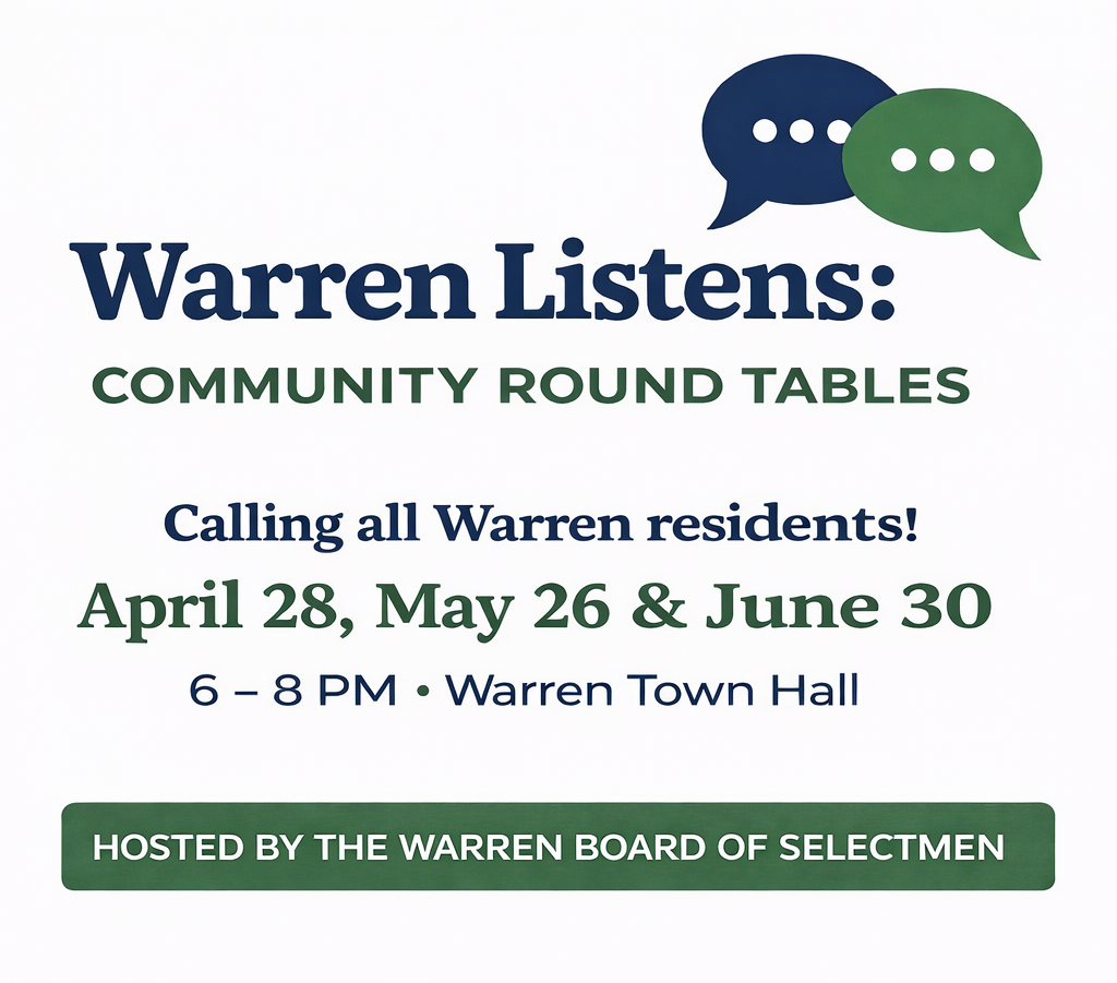 | April 28, 2026 | 6:00 PM – 8:00 PM | Warren Town Hall |